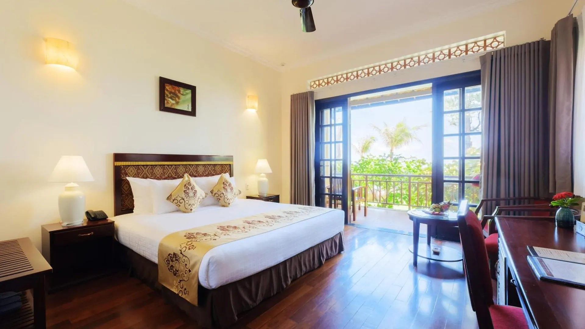 Las habitaciones insonorizadas del Sunny Beach Resort & Spa Mui Ne están equipadas con TV de plasma, y algunas cuentan con suelo de madera. Las habitaciones están diseñadas con decoración cómoda.